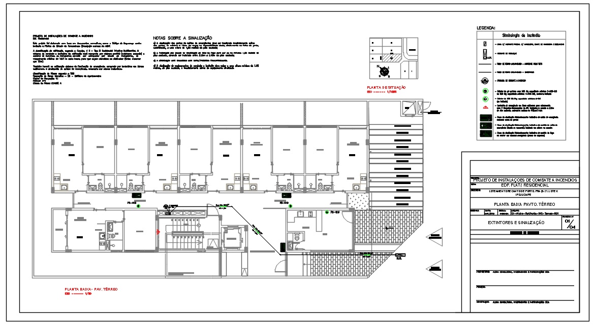 O projeto de instalações de combate a incêndios contempla as plantas baixas, desenho dos pontos de extintores, tubulações de hidrantes, e outros elementos necessários ao entendimento das instalações. A abrangência do projeto inclui os pontos de utilização localizados no interior da edificação.